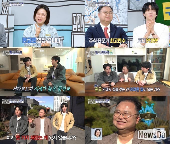이날 방송은 ‘대한민국의 실리콘밸리’로 불리는 게임 산업의 중심지 판교 신도시를 조명하며 임장에 나섰다. 판교는 경기도 성남시 분당구에 위치한 대표적인 신도시로, IT·게임 기업들이 밀집해 있는 첨단 산업 중심지로 꼽히며 경부고속도로를 기준으로 동판교와 서판교로 구분된다. 지난 여의도 편에서의 활약으로 화제를 모은 최고민수와 배우 안재현이 게스트로 함께해 MC 양세찬과 호흡을 맞췄다.