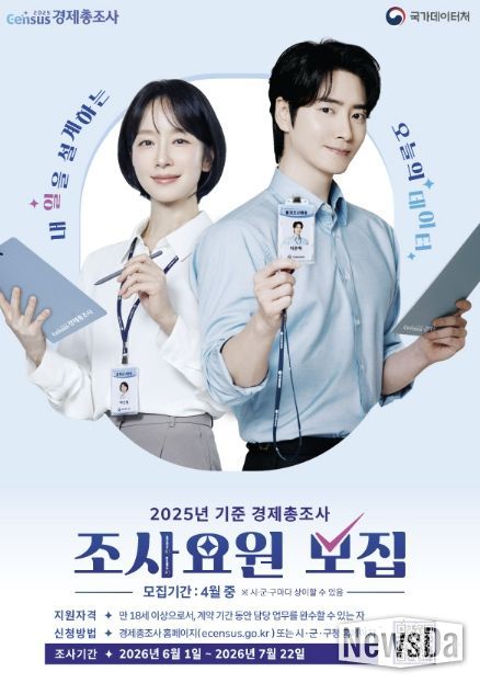 지원 희망자는 경제총조사 누리집을 통해 온라인으로 신청하거나, 과천시청 정보통신과 빅데이터팀을 방문해 신청할 수 있다. 제출 서류와 우대 조건 등 자세한 사항은 과천시청 누리집 채용공고에서 확인하면 된다.