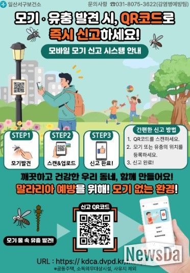 뉴스다 최광묵 기자 | 고양특례시 일산서구보건소는 모기 발생 민원을 신속하게 접수하고 방역 취약지역을 체계적으로 관리하기 위해 ‘모바일 모기 신고 시스템’을 운영한다고 3일 밝혔다.