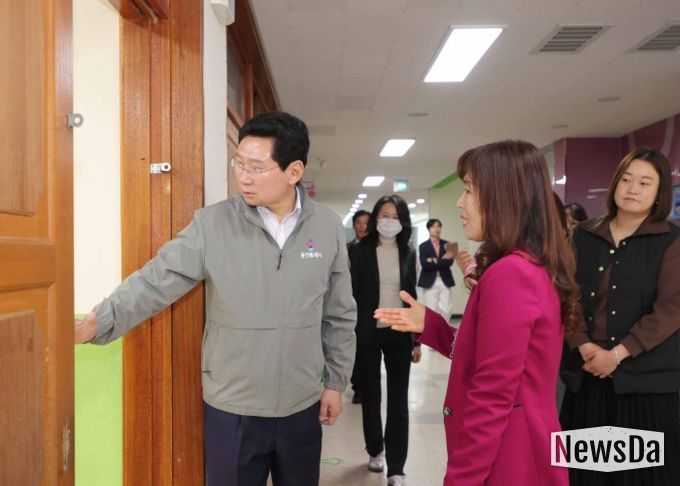 학부모들의 요청에 따라 진행된 이날 교통 봉사에서 이 시장은 교통지도에 앞서 학교 도서관 조성 현장을 방문해 교육환경 개선사업 추진 현황을 확인하고, 학교 관계자들과 함께 통학로와 학교 시설 전반을 점검했다.