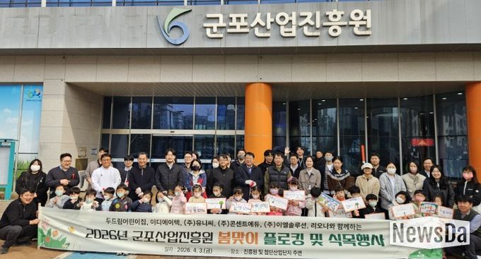 뉴스다 최광묵 기자 | 군포산업진흥원이 제81회 식목일을 기념하여 지난 3일 창업보육센터 입주기업과 두드림어린이집이 함께하는 ‘플로깅(plogging)’ 환경정화 활동을 실시했다고 밝혔다.