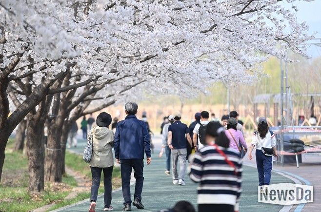 뉴스다 최광묵 기자 | 하남시가 도심 곳곳에 벚꽃이 흐드러지게 피어나며 시민들에게 낮과 밤이 모두 아름다운 봄의 정취를 선사하고 있다.