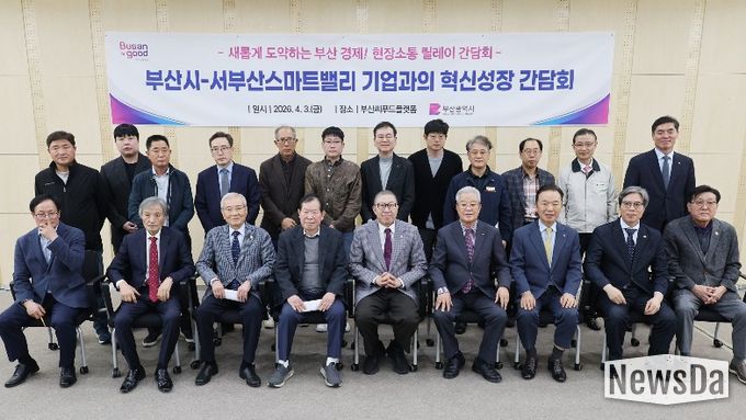 뉴스다 최광묵 기자 | 부산시는 오늘(3일) 오후 2시 30분, 사하구 부산씨푸드플랫폼 대회의실에서 서부산스마트밸리 기업과 함께 '제6차 기업 혁신성장 릴레이 간담회'를 개최한다고 밝혔다.
