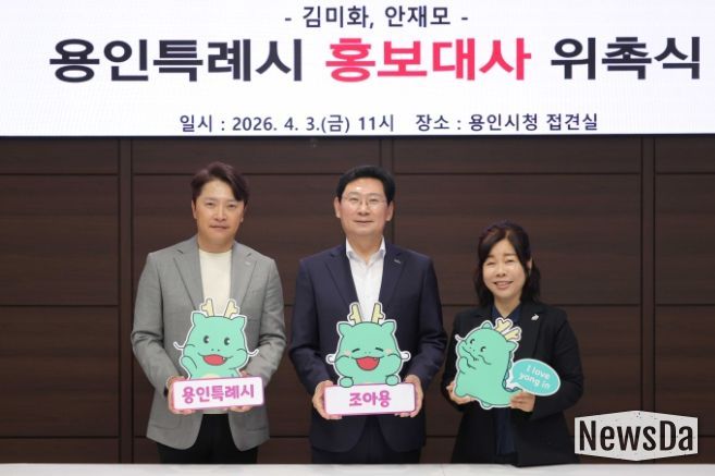 뉴스다 최광묵 기자 | 용인특례시는 3일 용인 시민인 방송인 김미화씨와 배우 안재모씨를 홍보대사로 위촉했다.