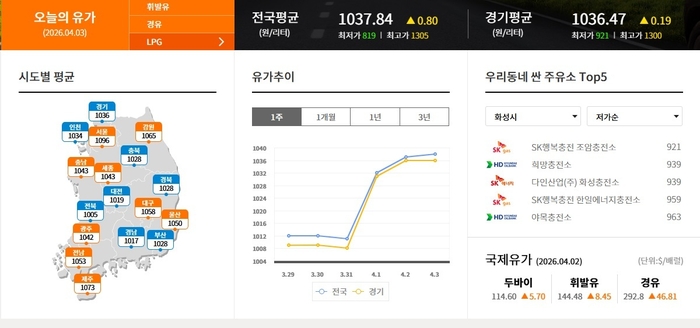 ▲화성시 휘발류 제일 싼 주유소 1770원 HD현대오일뱅크(주)직영 봉담셀프