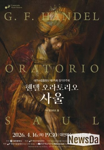 뉴스다 최광묵 기자 | 대전시립합창단은 4월 16일 오후 7시 30분 대전예술의전당 아트홀에서 제175회 정기연주회 헨델의 오라토리오 ‘사울’을 공연한다.