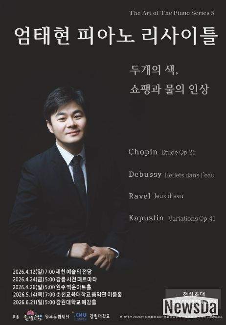 뉴스다 최광묵 기자 | 제천 출신 피아니스트 엄태현 피아노 리사이틀이 오는 4월 12일 7시 제천 예술의 전당에서 열린다.