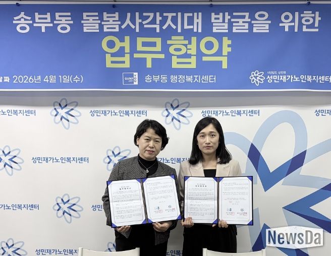 뉴스다 최광묵 기자 | 군포시 송부동 행정복지센터와 성민재가노인복지센터가 지난 4월 1일 군포시 돌봄사각지대 예방 및 위기가구 발굴을 위해 민관 협력 업무협약을 체결했다.