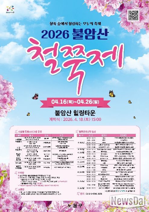 뉴스다 최광묵 기자 | 서울 노원구가 철쭉 개화 시기에 맞추어 오는 16일부터 26일까지 '2026 불암산 힐링타운 철쭉제(이하 철쭉제)'를 개최한다고 밝혔다.