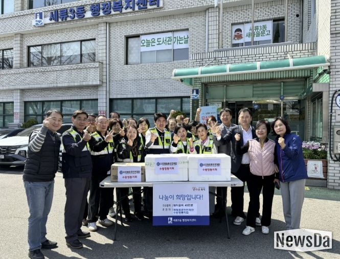 재단은 물품 전달 후 세류3동 관계자들과 함께 인근 수원천 일대에서 쓰레기를 수거하며 쾌적한 마을 환경 조성에 힘을 보탰다.