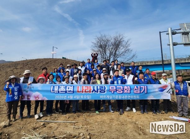 이번 행사는 무궁화 식재를 통해 지역공동체 의식을 높이고 애국심과 환경보호의 중요성을 알리기 위해 마련됐다. 이날 바르게살기운동 위원과 주민자치회 위원 등 40여 명은 내촌나들목 교차로 도로 법면에 무궁화 700주를 심었다.