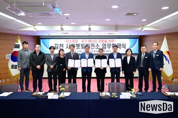 뉴스다 최광묵 기자 | 김천시는 4월 2일, 대구지방환경청, 경상북도탄소중립지원센터, (사)누구나햇빛발전과 함께 ‘경북 1호 김천 시민햇빛발전소’건립을 위한 업무협약을 체결했다. 이번 협약은 공공 유휴부지를 활용해 시민이 참여하는 재생에너지 모델을 구축하기 위해 추진됐다.