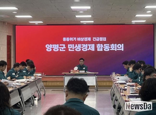 뉴스다 최광묵 기자 | 양평군은 최근 중동 정세 불안에 따른 대외 경제의 불확실성이 심화됨에 따라 ‘중동위기 대응 비상경제 TF’를 구성하고, 6일 오전 군청 대회의실에서 민생경제 합동회의를 개최하여 민생경제 안정과 물가 관리를 위한 본격적인 행보에 나섰다.
