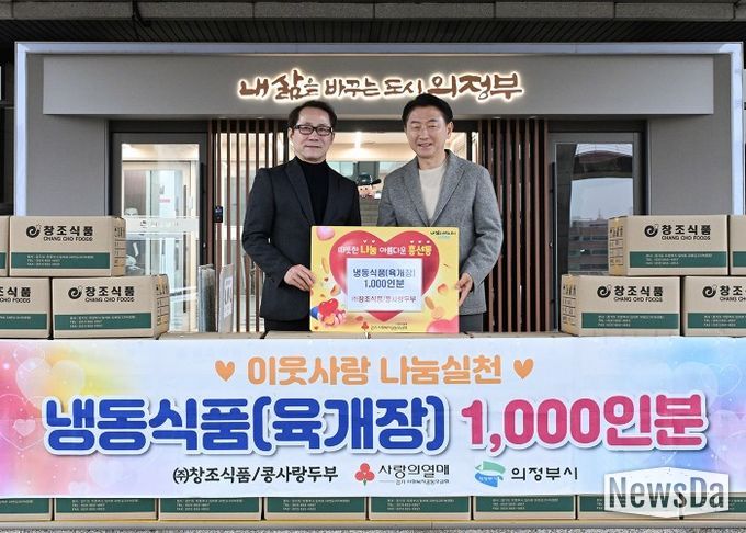 뉴스다 최광묵 기자 | 의정부시는 4월 6일 ㈜창조식품‧콩사랑두부가 흥선‧호원권역 독거노인 등 취약계층 지원을 위해 냉동 육개장 1천 인분을 기탁했다고 밝혔다.