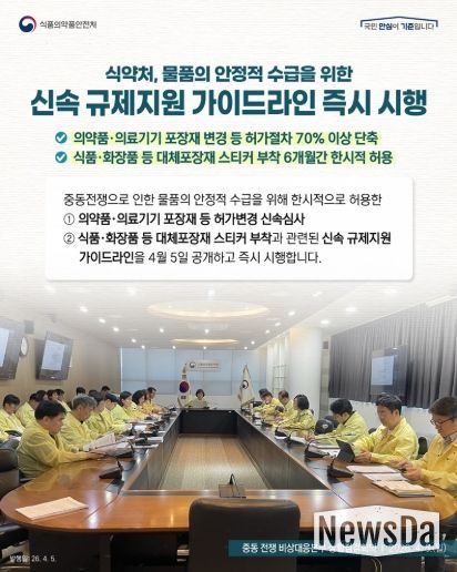 뉴스다 최광묵 기자 | 식약처, 물품의 안정적 수급을 위한 신속 규제지원 가이드라인 즉시 시행