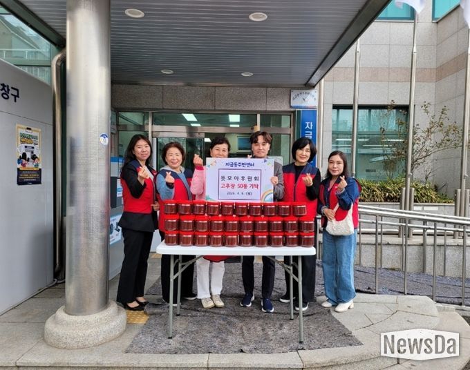 뉴스다 최광묵 기자 | 의정부시 자금동주민센터는 4월 6일 뜻모아후원회가 관내 취약계층 지원을 위해 직접 담근 고추장 50통을 기탁했다고 밝혔다.
