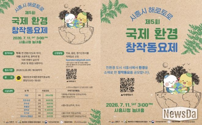 뉴스다 최광묵 기자 | 시흥시는 기후위기 시대를 맞아 동요로 환경의 가치를 전하고 친환경도시 시흥을 알리는 ‘제5회 시흥시 해로토로 국제 환경창작동요제’ 공모를 시작했다.