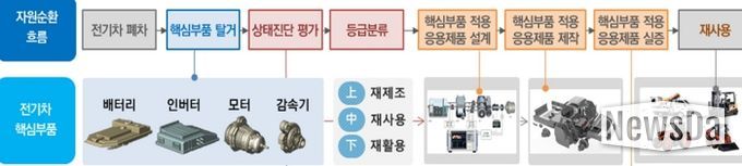 특히, 사용후 핵심부품을 ▶ 회수 ▶ 진단·평가 ▶ 등급분류 ▶재사용 ▶실증으로 이어지는 산업화 가능한 순환경제 구조로 전환한다는 점에서 의미가 크다.