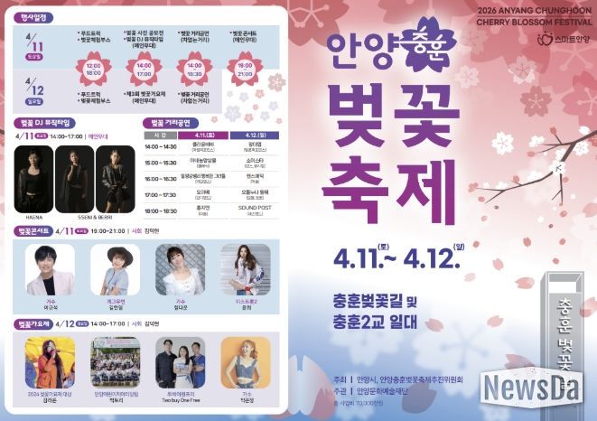시 관계자는 “안양충훈벚꽃축제를 단순한 계절 행사를 넘어 시민과 지역이 함께 즐기는 안양의 대표 봄축제로 만들어가겠다”며 “많은 시민과 방문객이 아름다운 벚꽃길에서 공연과 체험, 먹거리까지 함께 즐기며 특별한 추억을 만들기 바란다”고 말했다.
