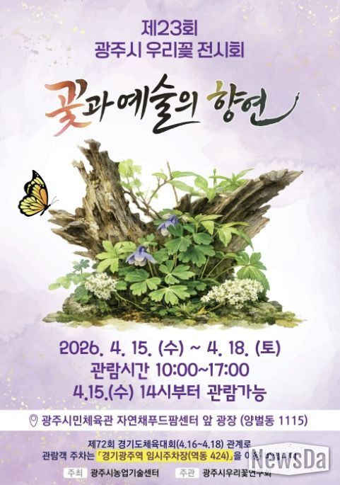 뉴스다 최광묵 기자 | 광주시는 오는 15일부터 18일까지 나흘간 광주시민체육관 자연채푸드팜센터 앞 광장에서 ‘제23회 우리 꽃 전시회’를 개최한다고 8일 밝혔다.