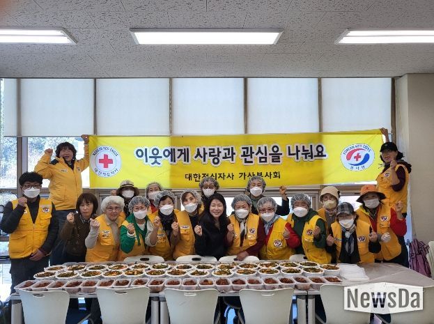 뉴스다 최광묵 기자 | 포천시 대한적십자사 가산봉사회는 지난 7일 회원 20여 명이 참여한 가운데 지역 내 취약계층을 위한 사랑의 반찬 나눔 행사를 진행했다.