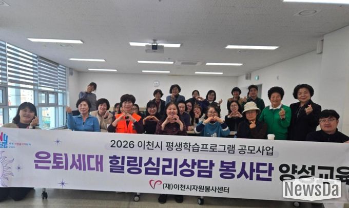 뉴스다 최광묵 기자 | (재)이천시자원봉사센터는 4월 6일 공설운동장 4층 대회의실에서 시민 23명이 참여한 가운데 ‘2026년 이천시 평생학습 프로그램 공모사업’의 일환으로 은퇴세대 힐링심리상담 ‘마음쉼표’ 봉사단 양성교육을 시작하며 본격적인 활동의 첫걸음을 내디뎠다.