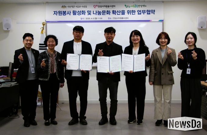 뉴스다 최광묵 기자 | 안성시자원봉사센터는 지난 6일, 안성시자원봉사센터 강의실에서 (사)마을과사람들, 경기도아동돌봄안성센터와 지역사회 복지 발전 및 나눔 문화 확산을 위한 업무협약을 체결했다.