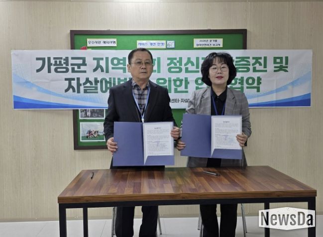 뉴스다 최광묵 기자 | 가평군정신건강복지센터·자살예방센터는 지역사회 정신건강 증진과 자살 예방을 위해 청평우리병원과 업무협약(MOU)을 체결했다고 9일 밝혔다. 지난 7일 체결된 이번 협약은 최근 증가하는 정신건강 문제와 자살 위험군에 대한 대응 역량을 강화하기 위해 마련됐다.