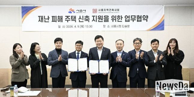 뉴스다 최광묵 기자 | 시흥시는 각종 사회재난 및 자연재난으로 피해를 본 주민의 신속한 주거 안정을 지원하기 위해 시흥지역 건축사회와 ‘재난 피해주택 신축 지원을 위한 업무협약’을 지난 4월 9일 다슬방에서 체결했다.