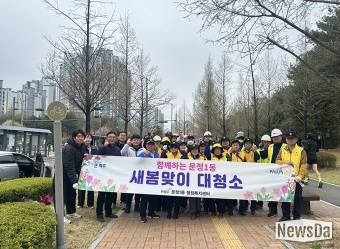뉴스다 최광묵 기자 | 파주시 운정1동은 지난 9일, 봄철을 맞아 시민들에게 쾌적한 환경을 제공하기 위해 녪년 봄맞이 일제 대청소’와 연계한 ‘경기도 기후소득 줍깅’실천 활동을 전개했다.