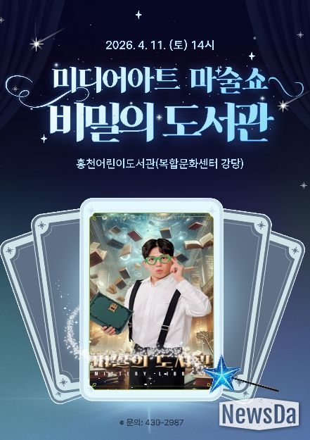 뉴스다 최광묵 기자 | 홍천 어린이도서관은 도서관의 날(4월 12일)을 기념하여 4월 11일 토요일 홍천 복합 문화센터 강당에서 미디어 아트 마술쇼 '비밀의 도서관'을 선보인다.