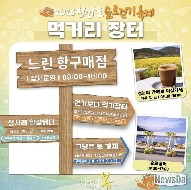 뉴스다 최광묵 기자 | 완도군은 4월 30일까지 개최되는 ‘청산도 슬로걷기 축제’에서 다양한 먹거리 부스를 운영해 관광객에게 특별한 완도의 맛을 선보이고 있다.