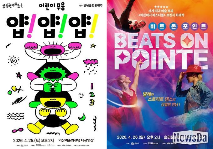 익산예술의전당은 오는 25일 국립현대무용단의 어린이 무용 '얍! 얍! 얍!'에 이어 26일 융복합 댄스 공연 '비트 온 포인트(Beats on Pointe)'를 선보인다.
