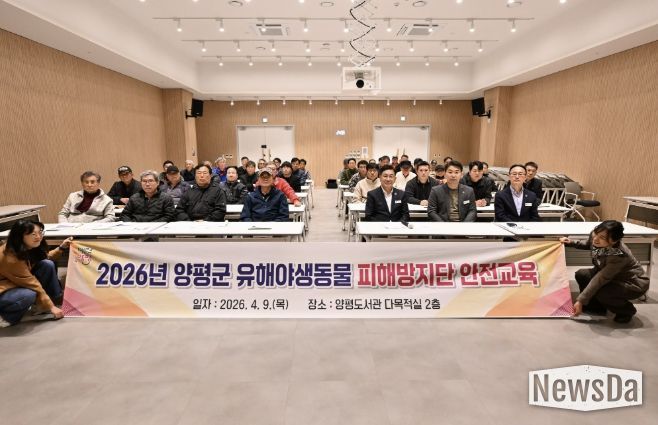 뉴스다 최광묵 기자 | 양평군은 지난 9일 아프리카돼지열병(ASF) 확산 방지와 농작물 피해 예방을 위해 ‘2026년 양평군 유해야생동물 피해방지단 안전교육’을 실시했다.