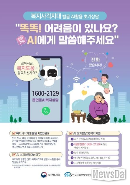 발굴된 대상자는 읍·면·동 인공지능(AI) 복지 상담(☏1600-2129) 전화를 통해 1차 상담을 진행한다. 심층 상담이 필요하다고 판단되는 경우 즉시 현장을 방문해 2차 상담을 이어간다. 이후 위기 상황에 따라 긴급 복지 지원, 기초생활보장제도 등 공적 자원을 우선 연결하고, 지원 후에도 위기가 해소되지 않는 가구는 민간 자원과 연계해 촘촘한 복지 서비스를 제공할 방침이다.
