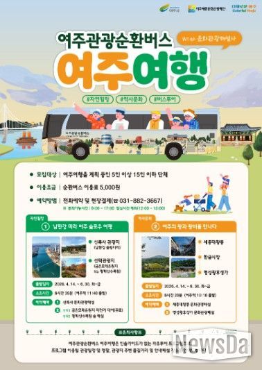 뉴스다 최광묵 기자 | 여주세종문화관광재단은 관광순환버스와 문화관광해설을 결합한 ‘여주관광순환버스 여주여행 with 문화관광해설사’프로그램을 시범 운영한다고 밝혔다.