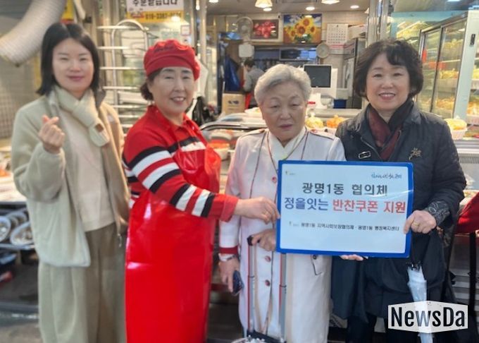 뉴스다 최광묵 기자 | 광명시 광명1동 지역사회보장협의체는 지난 9일 한부모 가정과 독거노인 등 취약계층을 돕기 위해 ‘정을 잇는 우리동네 반찬 쿠폰 나눔’ 사업을 진행했다.