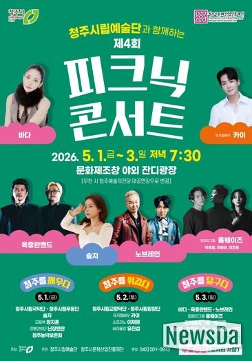 뉴스다 최광묵 기자 | 청주시는 청주시립예술단과 함께하는 제4회 ‘피크닉 콘서트’가 오는 5월 1일부터 3일까지 3일간 매일 오후 7시 30분 문화제조창 잔디광장에서 열린다고 밝혔다.