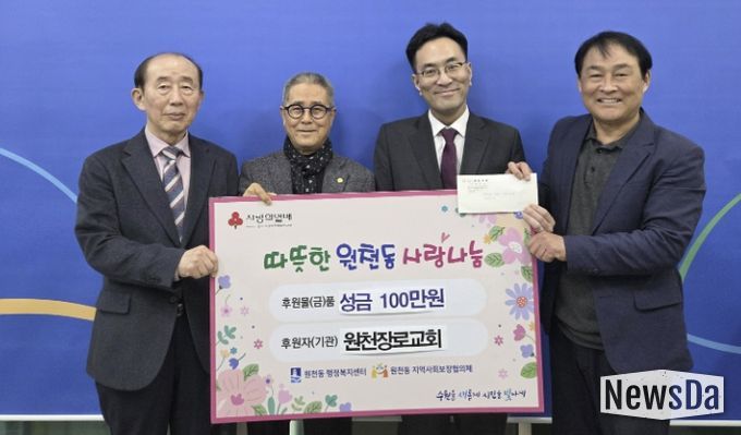 뉴스다 최광묵 기자 | 수원시 영통구 원천동은 지난 10일 원천장로교회가 지역 내 저소득 주민들을 돕기 위해 성금 100만 원을 행정복지센터에 기탁했다고 밝혔다.