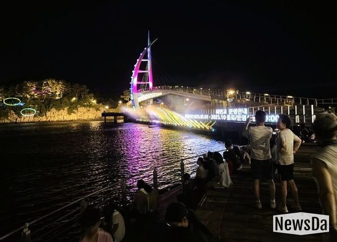 뉴스다 최광묵 기자 | 서귀포시는 야간 관광객 유치와 체류형 관광 활성화를 위해 제주의 대표 관광명소인 새연교에서 ‘2026년 음악분수쇼’를 4월 25일부터 10월 31일까지 운영한다고 밝혔다.