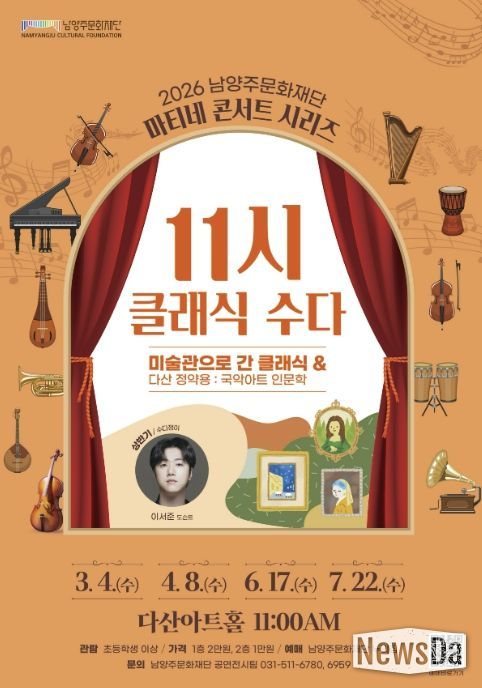 주광덕 남양주시장은 “문화는 시민의 삶을 풍요롭게 하고 지역 공동체를 더욱 단단하게 만드는 중요한 기반”이라며 “‘남양주 문화요일’ 집중 운영을 통해 문화 향유의 체감도를 높이고 남양주만의 차별화된 문화정책을 지속적으로 확대해 나가겠다”고 전했다.