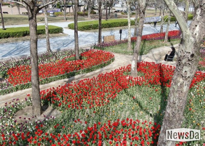 지난해 가을에 식재한 9만본의 튤립, 수선화를 포함해 총 13만6,000본의 형형색색 봄꽃이 만개했다.