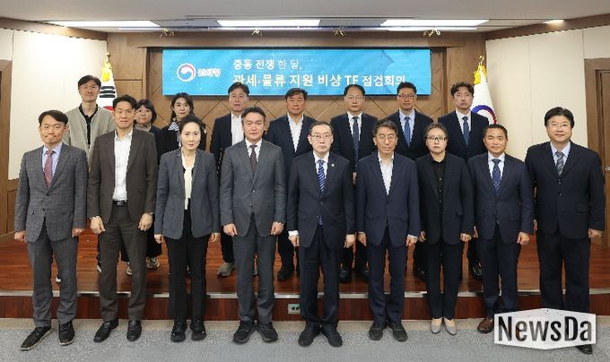 뉴스다 최광묵 기자 | 관세청은 중동 상황 장기화에 따른 수출입 기업의 피해를 최소화하기 위해 4월 13일 정부대전청사에서 이명구 청장 주재로 ‘관세·물류 비상 대응 전담조직(TF) 점검회의’를 개최했다. 이번 회의는 지난 3월 6일 발표된 ‘관세·물류 종합지원 방안’ 시행 한 달을 맞이하여 그간의 지원 실적을 점검하고, 그 결과를 향후 지원 방향 수립에 반영하기 위해 마련됐다.