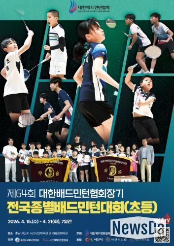 뉴스다 류대현 기자 | 충남 서산시는 2026 대한배드민턴협회장기 전국종별배드민턴대회(초등부)가 4월 15일부터 21일까지 7일간 서산시민체육관과 서산어울림체육관에서 개최된다고 밝혔다.