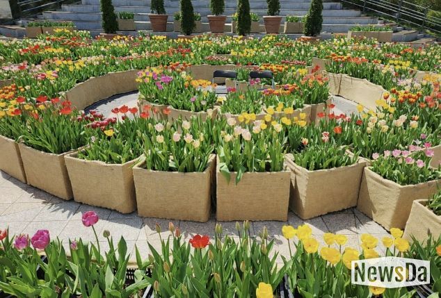 이번 화단은 튤립 구근을 상자 식재 방식으로 심은 튤립상자를 활용해 원형 동선을 따라 미로처럼 걸을 수 있도록 조성한 것이 특징이다. 방문객들은 미로 길을 따라 이동하며 꽃을 가까이에서 감상할 수 있고, 여러 색의 튤립이 어우러진 화단에서 한층 화려하고 풍성한 봄 풍경을 즐길 수 있다.