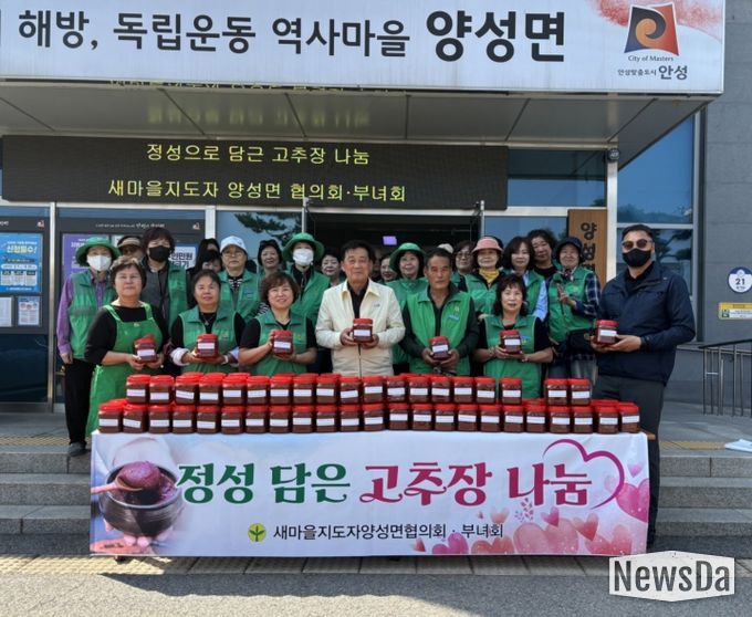 뉴스다 최광묵 기자 | 안성시 새마을지도자 양성면협의회와 새마을부녀회는 지난 13일, 관내 어려운 이웃을 위한 ‘정성 담은 고추장 나눔 행사’를 실시했다고 밝혔다.
