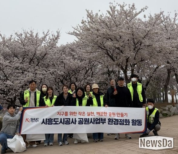 뉴스다 최광묵 기자 | 시흥도시공사는 지난 4월 11일, 벚꽃 개화 시기를 맞아, 시흥을 대표하는 공원인 갯골생태공원, 배곧한울공원, 오이도 선사유적공원 3개소에서 환경 정화와 생태 가치 회복을 위한 ‘벚꽃 플로깅’ 활동을 했다고 밝혔다.