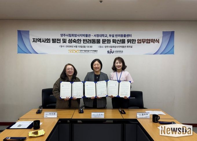 뉴스다 최광묵 기자 | 양주시립회암사지박물관은 서정대학교 및 서정대학교 부설 반려동물센터와 지난 13일 지역사회 발전과 성숙한 반려동물 문화 조성을 위한 업무협약(MOU)을 체결했다고 밝혔다.