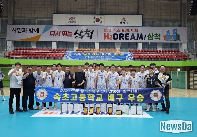 뉴스다 류대현 기자 | 속초고등학교 배구부가 최근 삼척에서 열린 ‘2026 한국 중·고 배구 1차 연맹전’에서 우승을 차지하며 전통 명문 배구부로서의 위상을 다시 한번 입증했다.