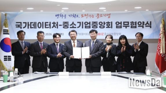 뉴스다 최광묵 기자 | 국가데이터처는 4월 14일 서울 여의도 중소기업중앙회에서 경제통계 개선과 기업의 통계조사 참여 활성화를 위해 중소기업중앙회(상근부회장 오기웅)와 업무협약(MOU)을 체결했다.